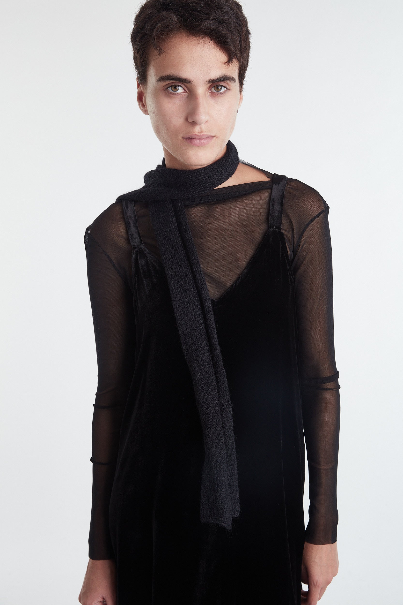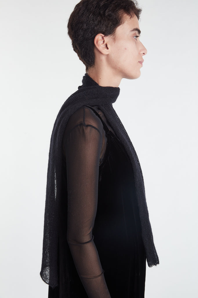 Sciarpina in kid mohair a un filo tinta unita, lavorazione a velo e rifinita a mano.