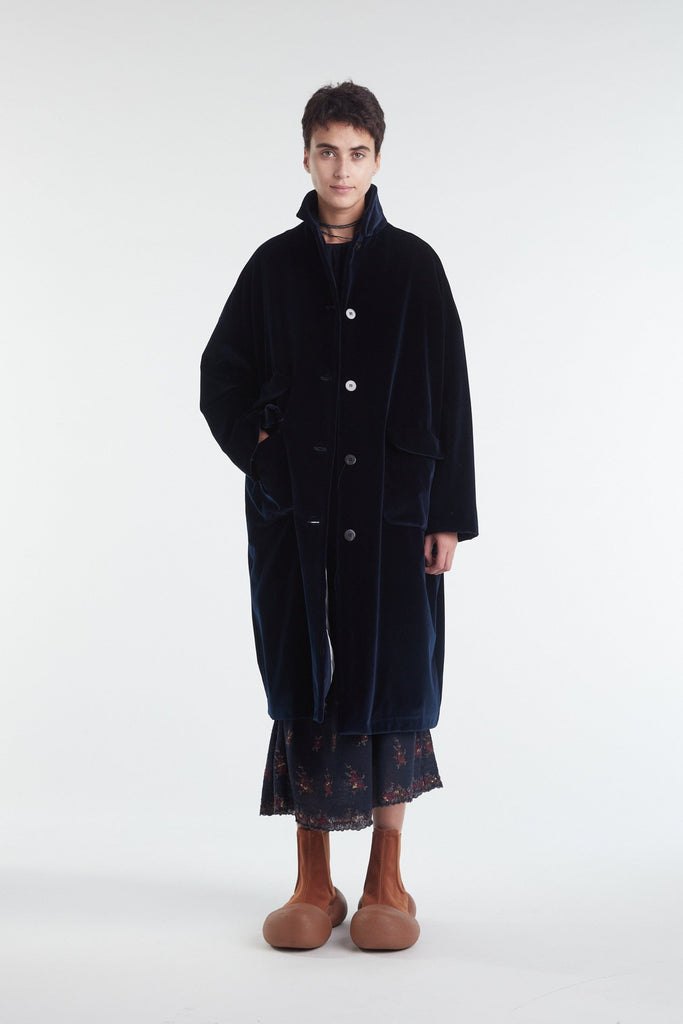 CAPPOTTO CAROL in velluto liscio / blu notte