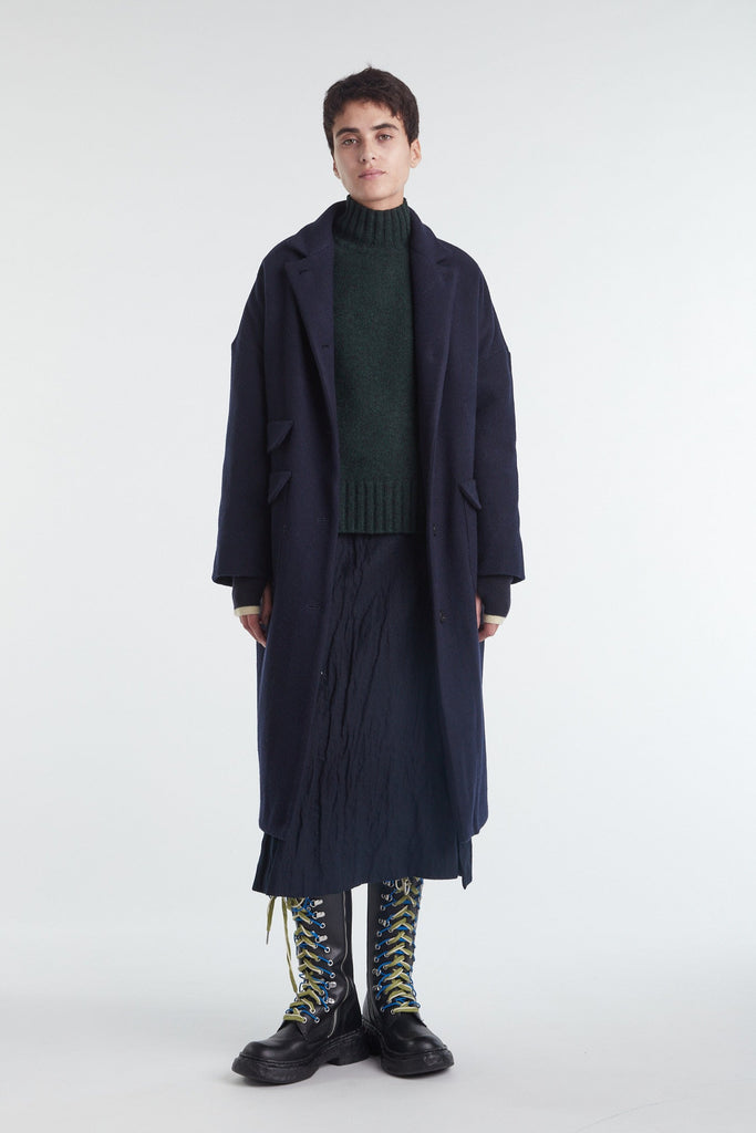 CAPPOTTO TOSCA in garza lana e cotone / blu notte