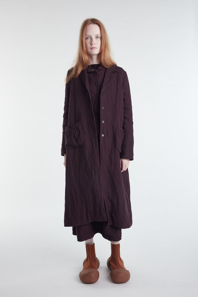 CAPPOTTO ELDA in garza di lana e cotone / prugna