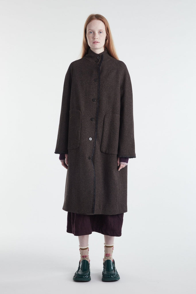 CAPPOTTO TOSCA in panno lana spigata jap / testa di moro