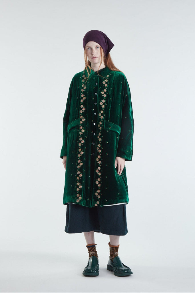 CAPPOTTO JACKIE in velluto ricamato / verde foresta
