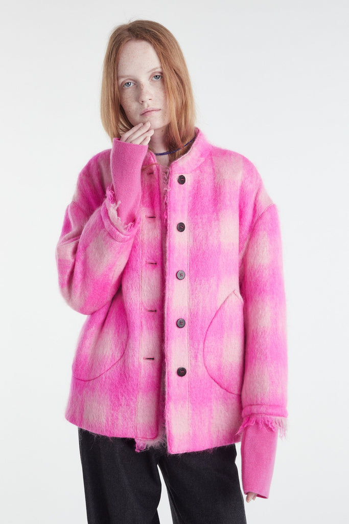 GIACCA BERTA in lana mohair a quadri / fucsia