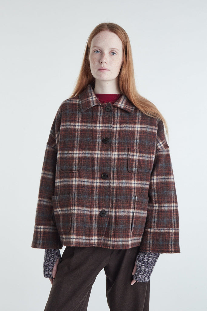 GIACCA KYOTO in lana jap a quadri / ruggine