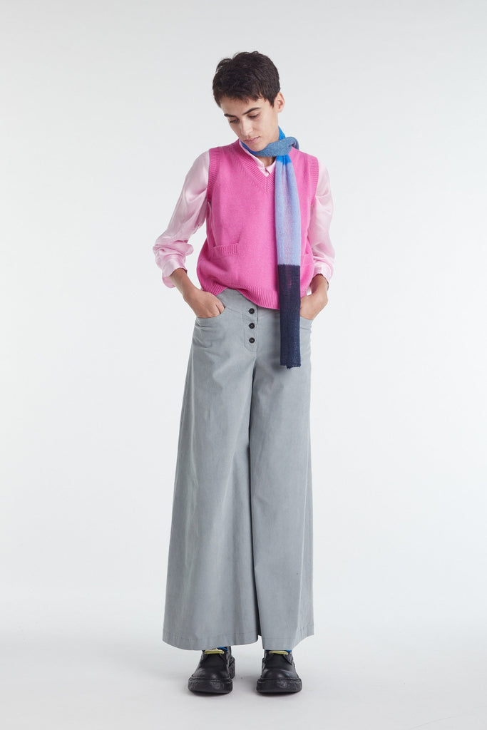 AGNESE DUSTER in checked linen gauze / brown and pistachio