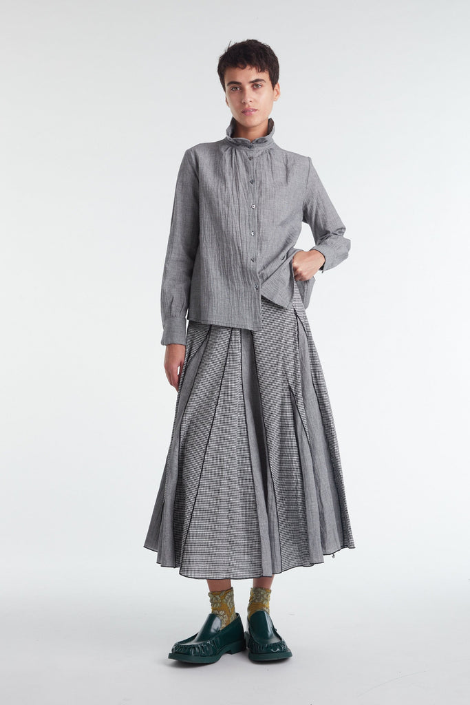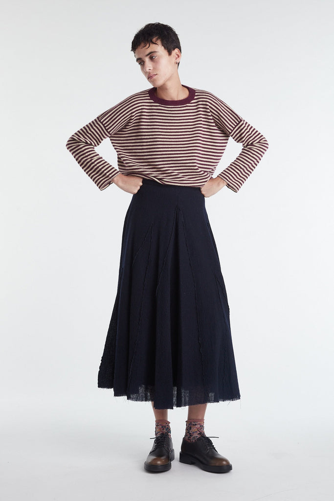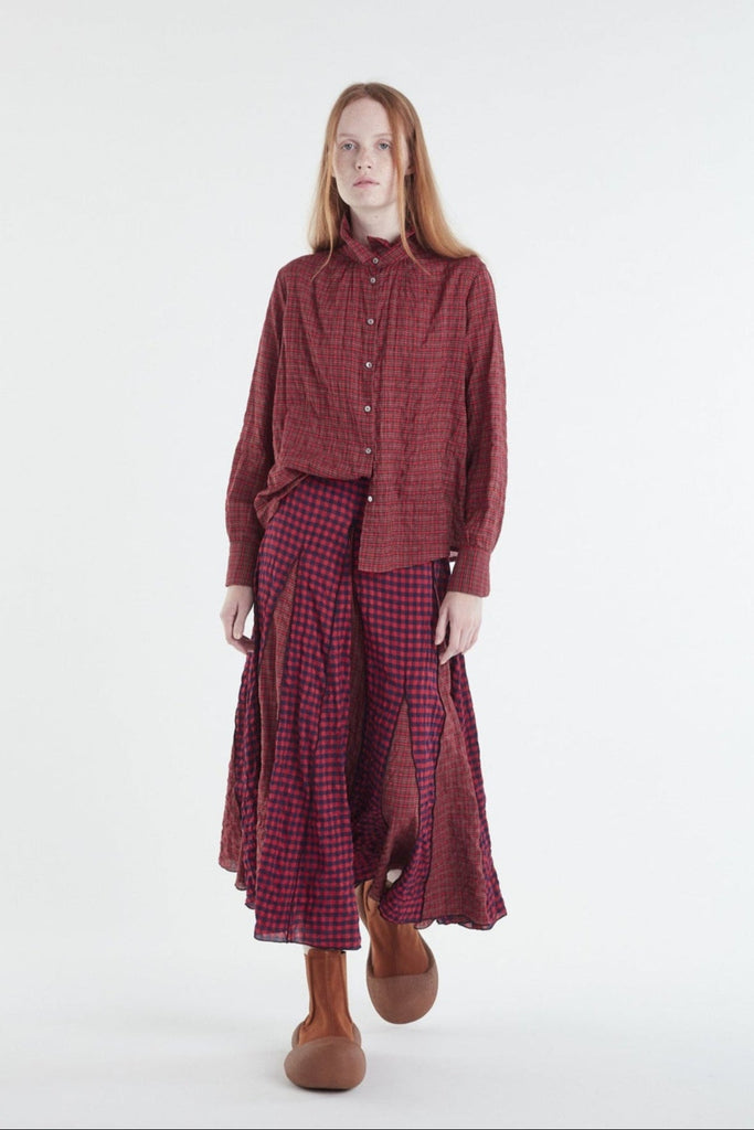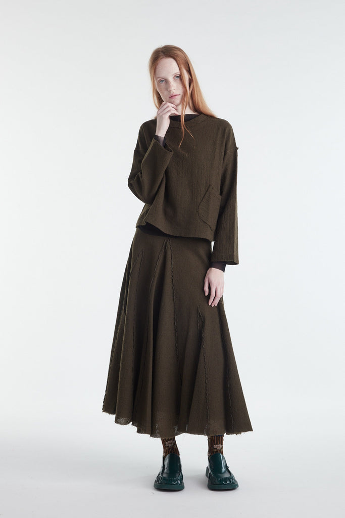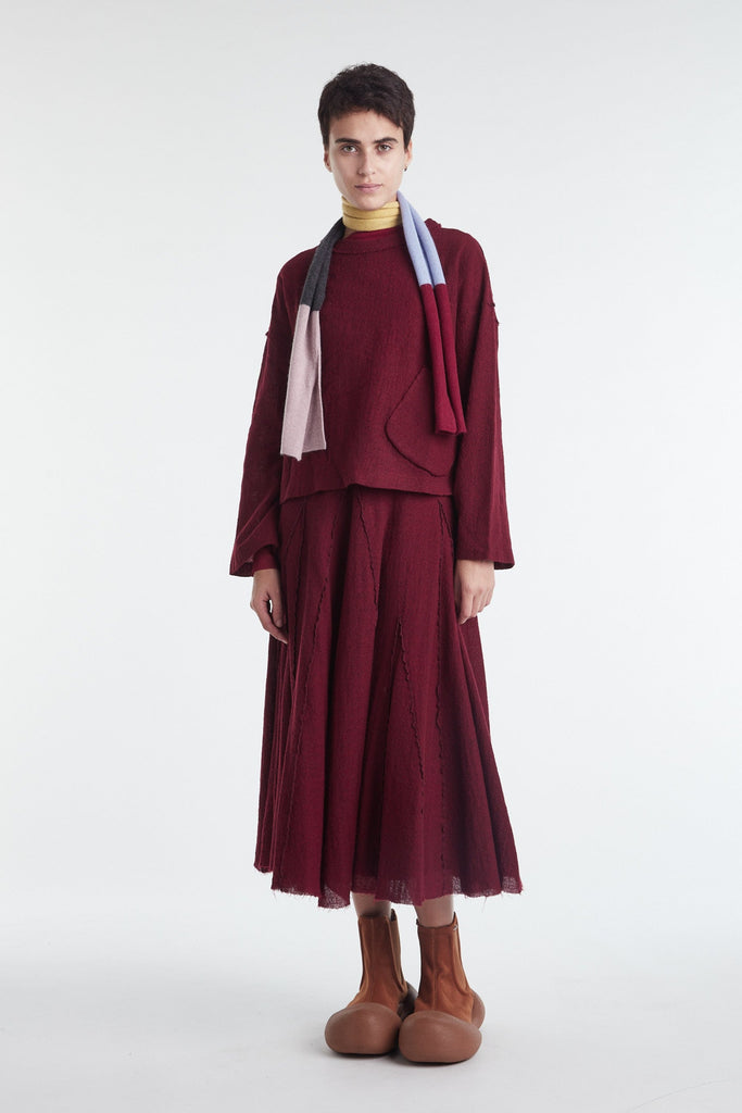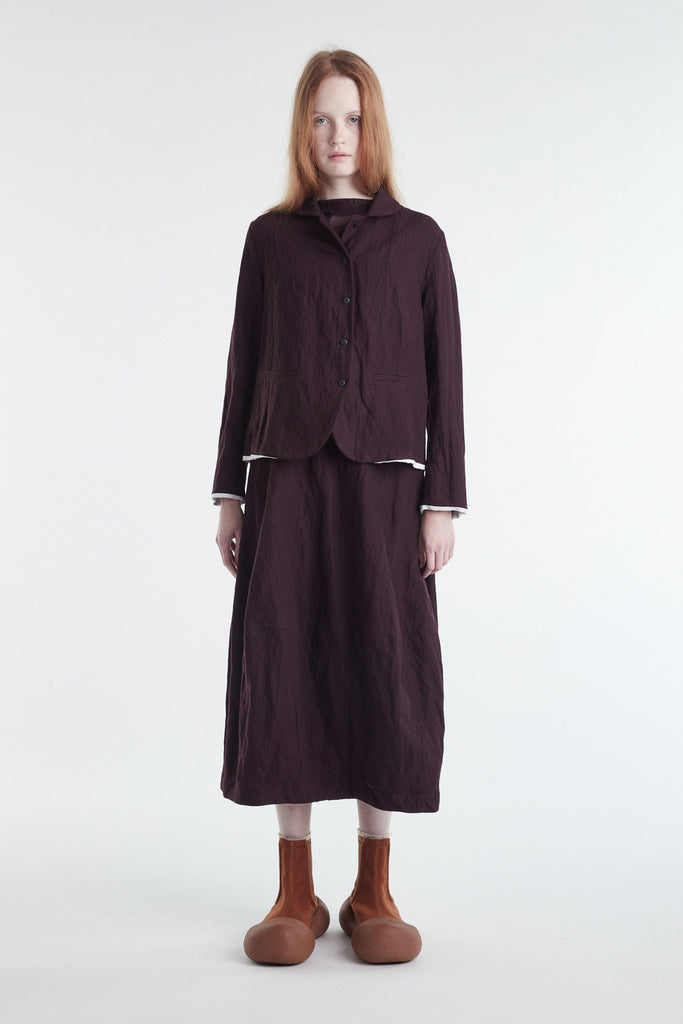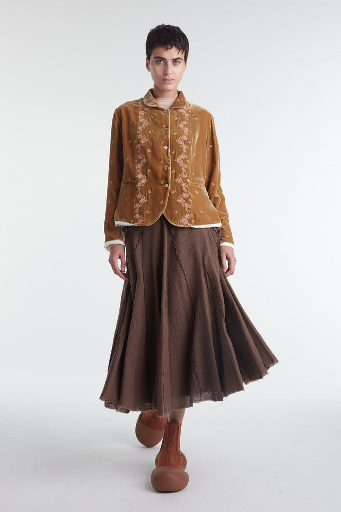 JACKIE Embroidered Velvet Flared Coat / Rust Orange