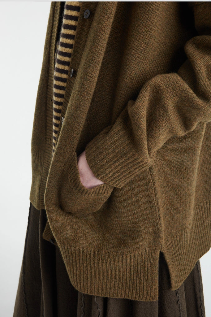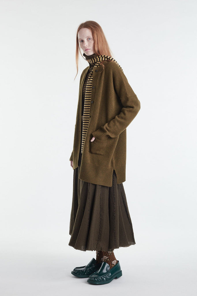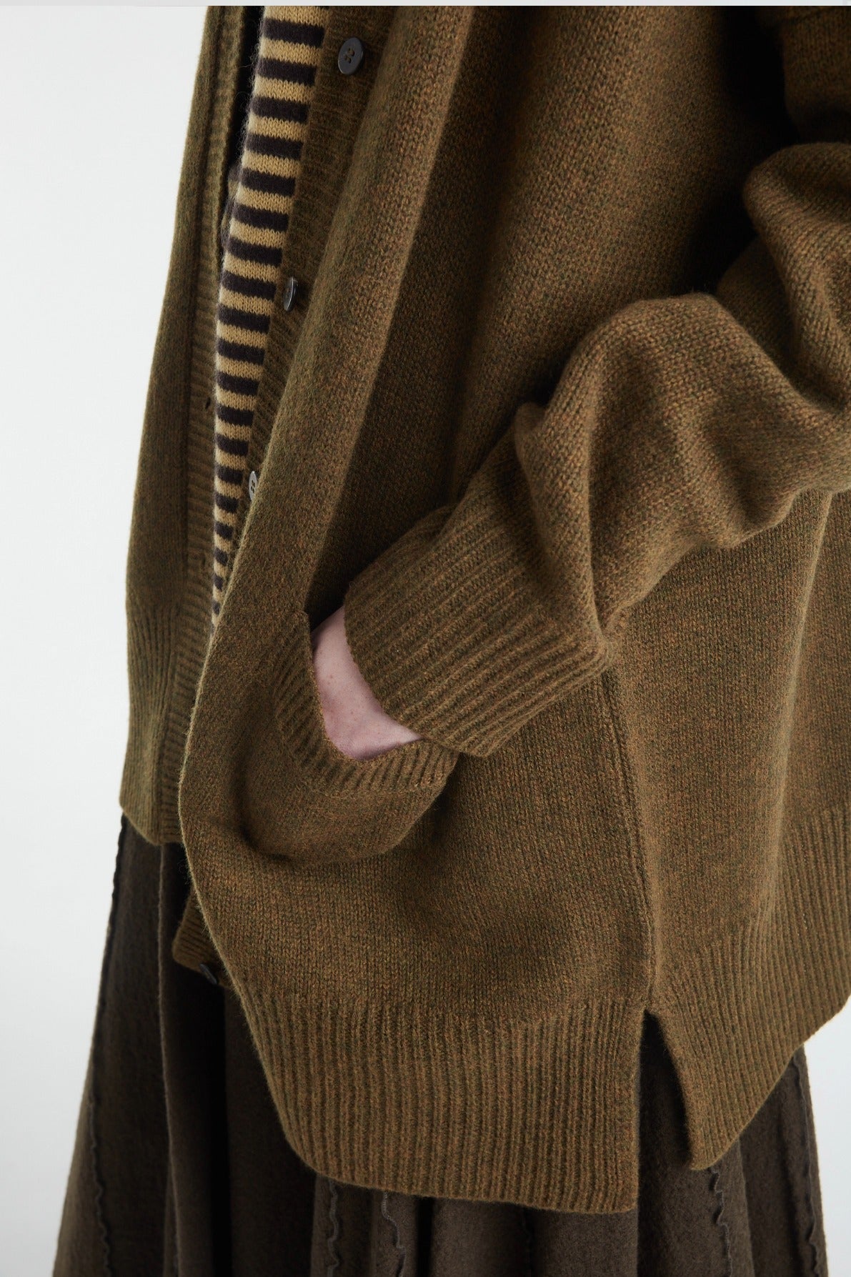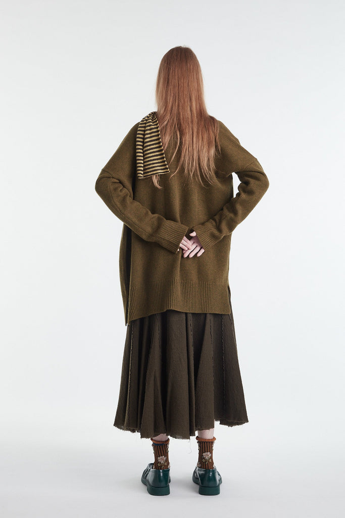 Pull col rond et manches courtes en cachemire couleur papier de sucre : armure toile sur le corps et armure côtelée sur le col, le bas et les manches. Coupe droite et courte. Toutes nos chemises présentent deux petits cristaux brodés à la main sur le côté droit comme élément distinctif.