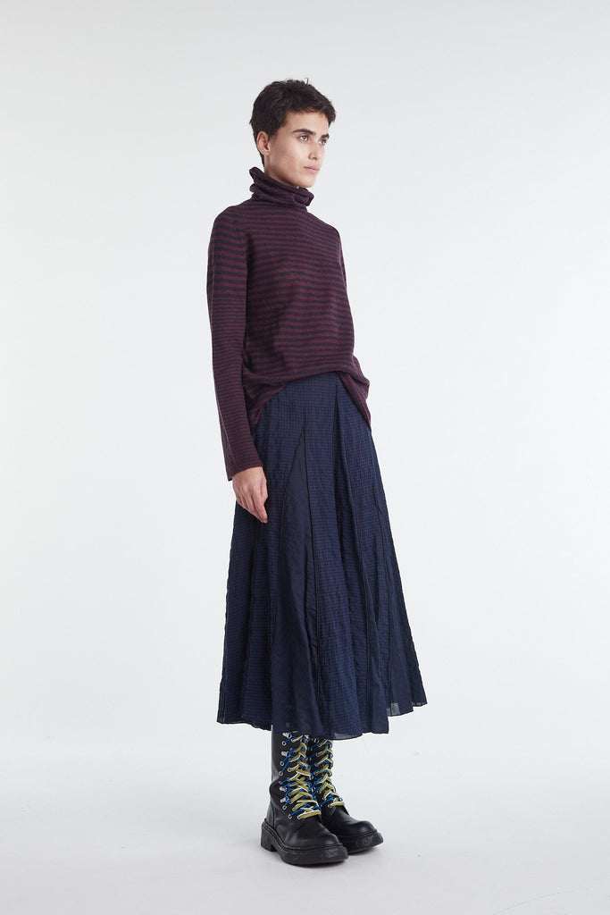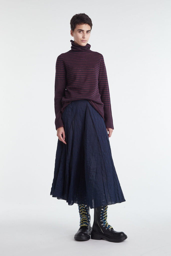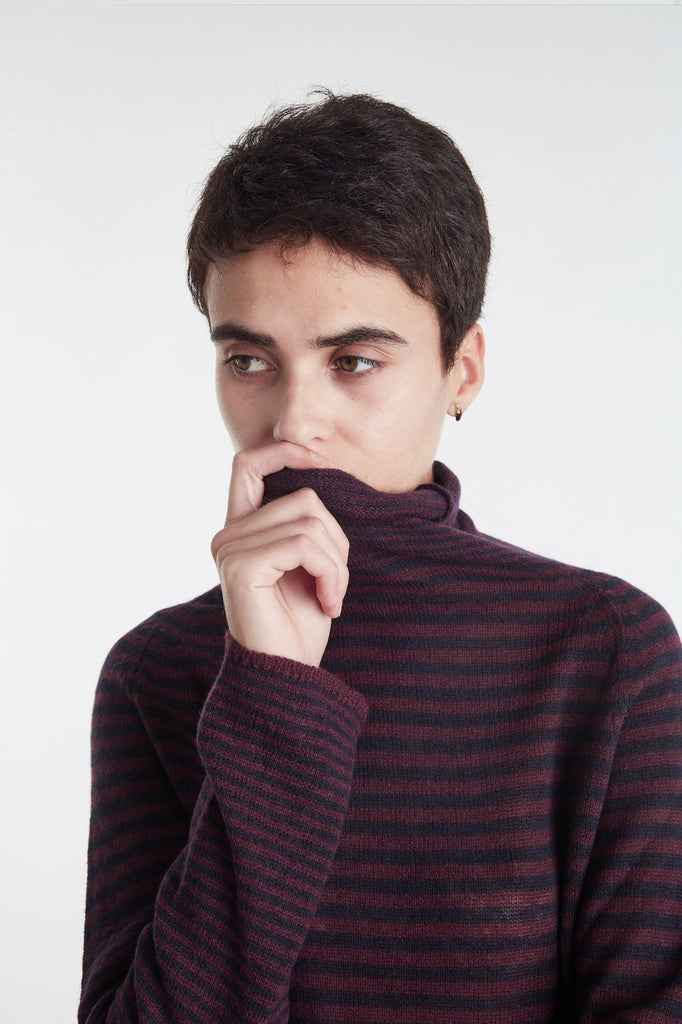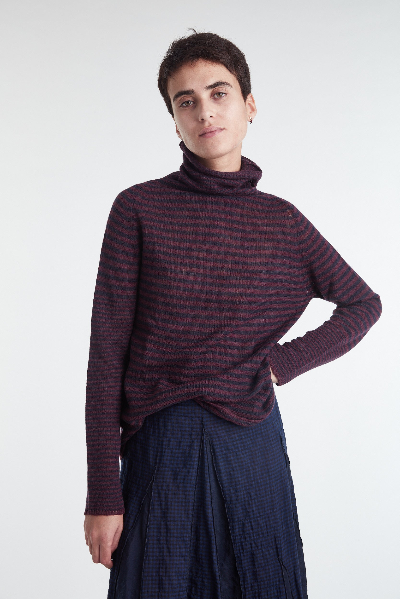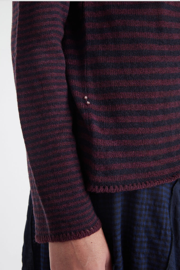 Pull col rond et manches courtes en cachemire couleur papier de sucre : armure toile sur le corps et armure côtelée sur le col, le bas et les manches. Coupe droite et courte. Toutes nos chemises présentent deux petits cristaux brodés à la main sur le côté droit comme élément distinctif.